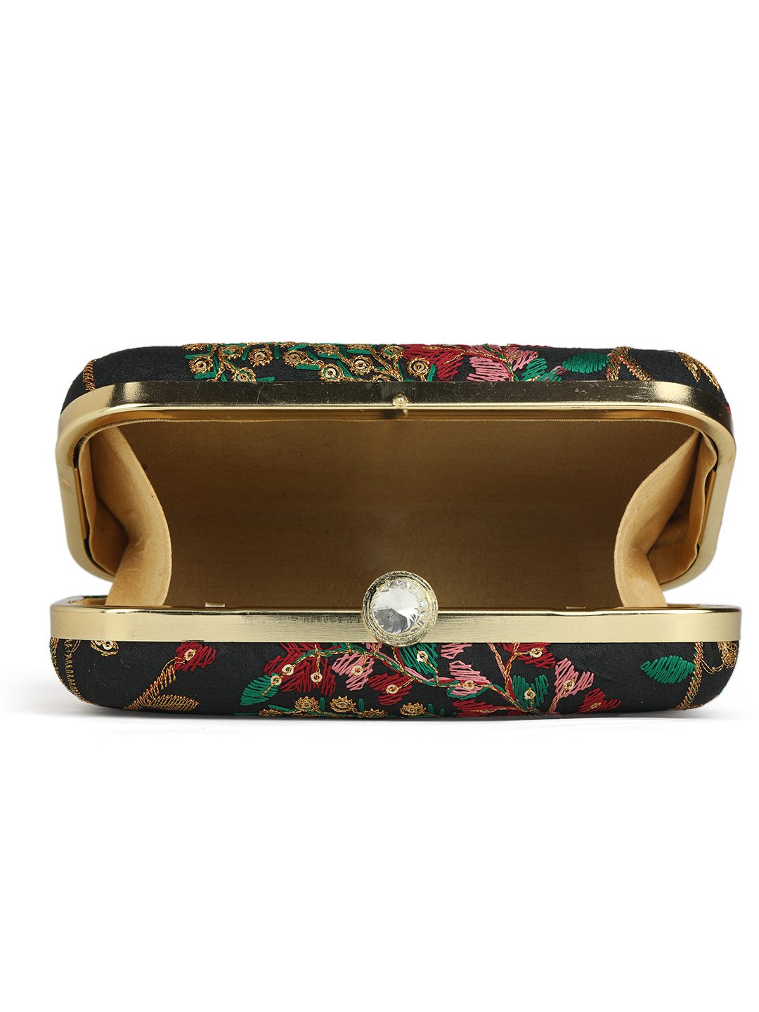 Black & Goldembroidered box clutches Has shoulder strap, 1 main compartment with twist closure
