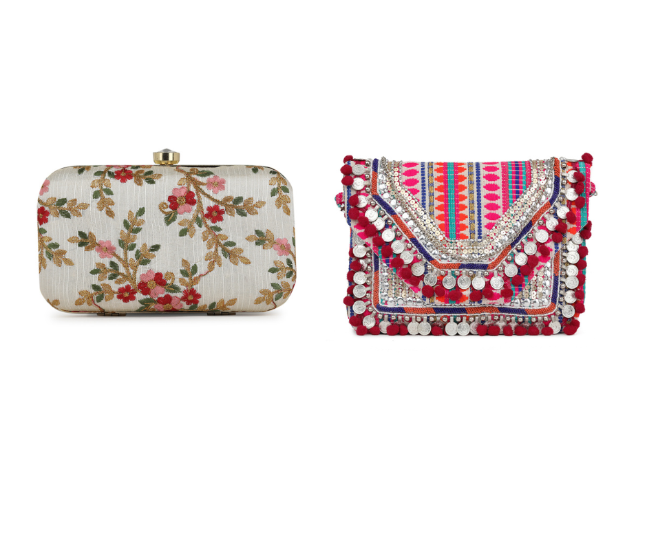 Combo Of Boho Bag And 's Pink & Gold Embroidered Box Clutches For Girls and womens