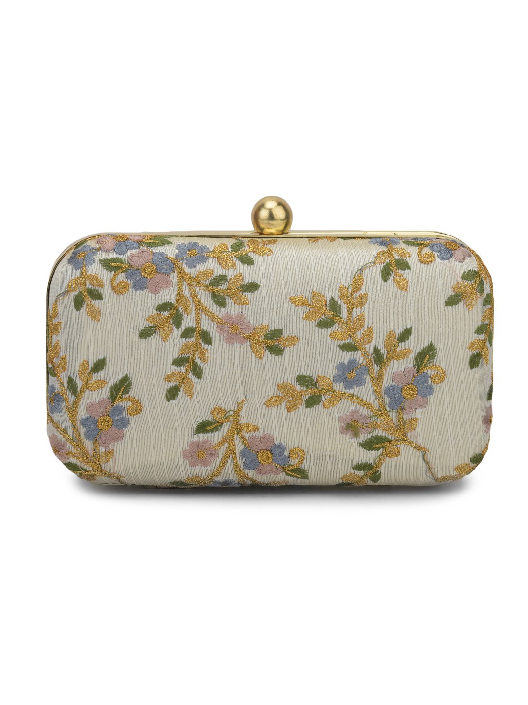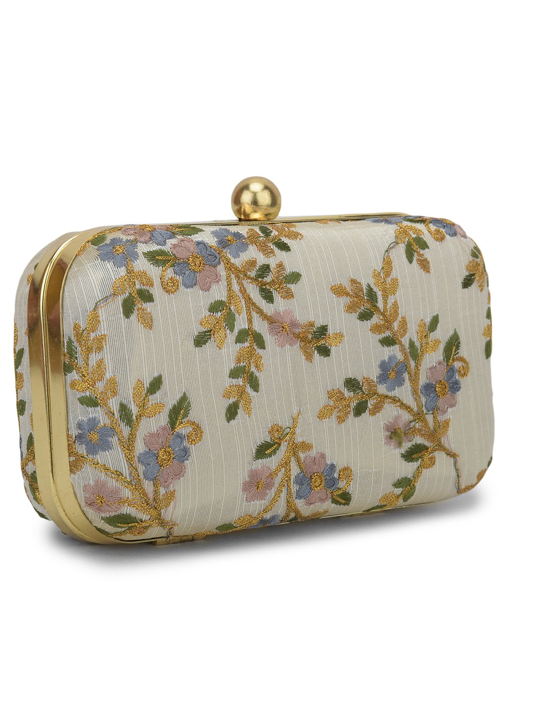 Combo Of Boho Bag And White & Gold-Toned Embroidered Party Box Clutch For Girls and Womens For Girls and womens