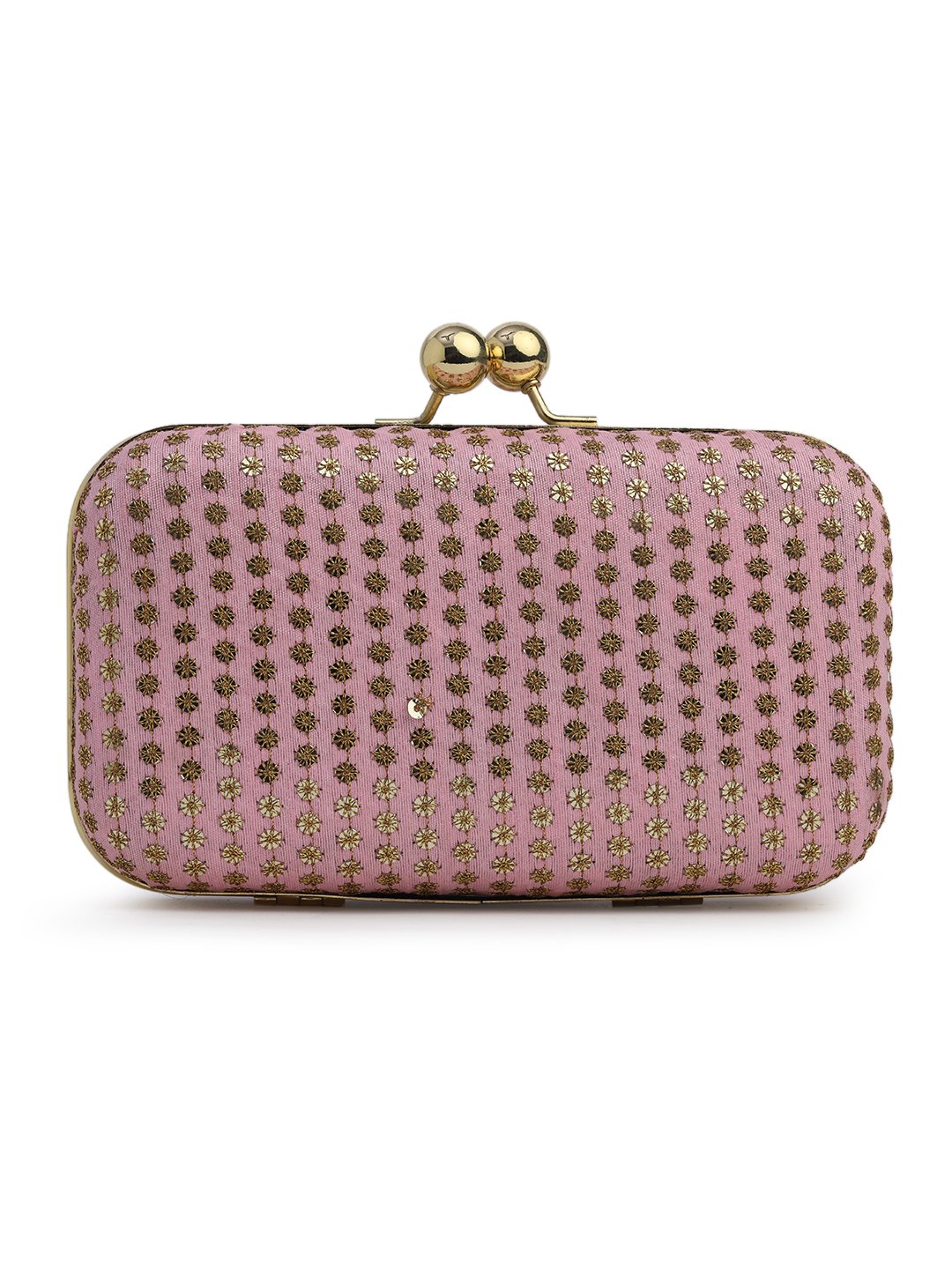Pink & Gold Embroidered Box Clutches For Girls and womens